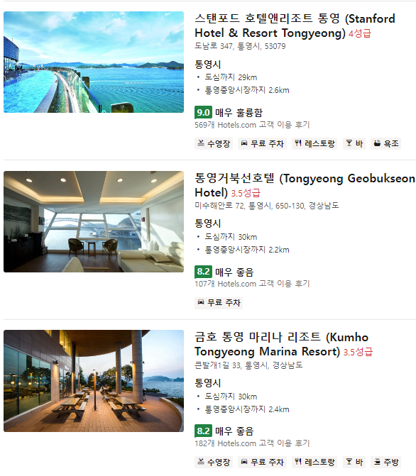이상 통영 가볼만한 곳 추천 여행 베스트 10에 대한 포스팅을 마치겠습니다. 혹시 통영에 1박2일 이상 여행을 계획하신 분들은 아래의 숙박시설 추천드립니다. 아래의 숙박시설이 아니더라도 숙박시설 등급, 가격, 사진, 후기들을 보면서 본인들에 취향에 맞게 고르시면 편안한 여행이 될 겁니다. 아무래도 여행의 피로는 숙박시설 좋아야 더욱더 즐거운 여행이 될 테니까요.